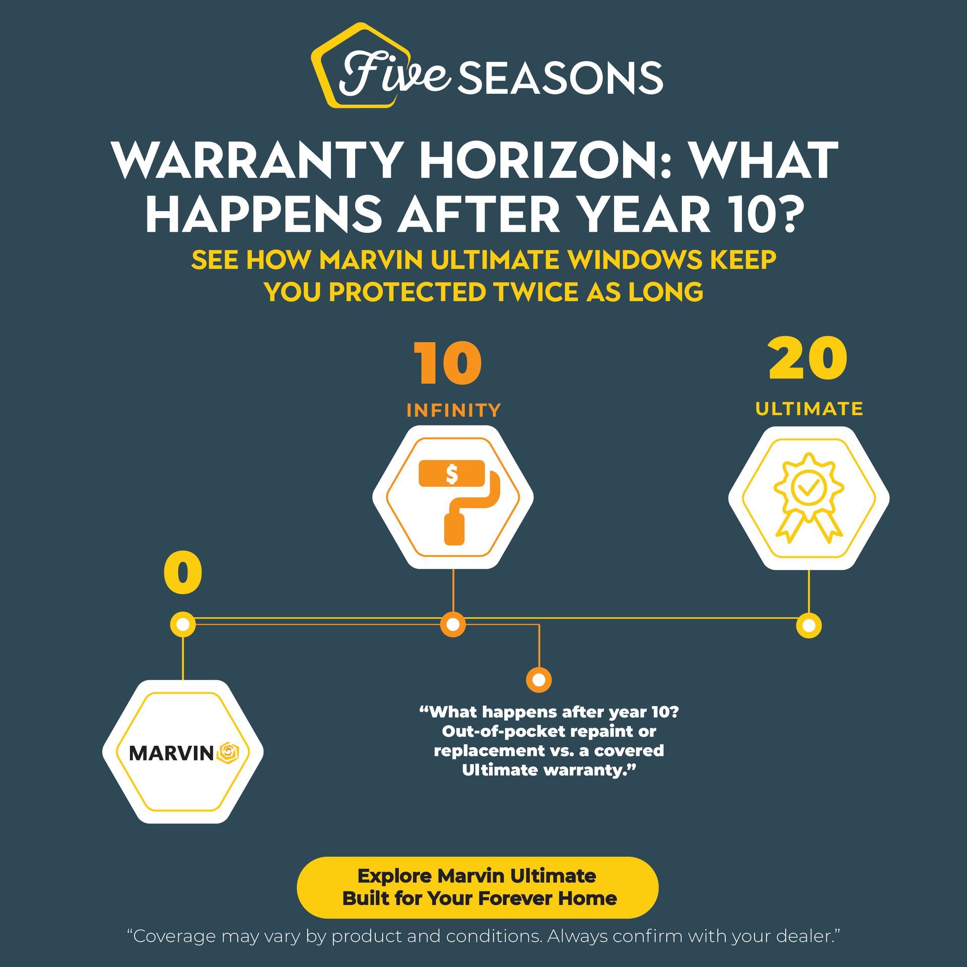 With Infinity's 10-year finish warranty, you're potentially facing refinishing costs in year 11—assuming the acrylic finish can be successfully refinished. Many acrylic finishes cannot be easily touched up or repainted, potentially requiring full window replacement.